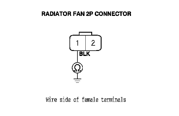 34. Check for continuity between the radiator fan 2P connector No. 1 terminal and body ground.