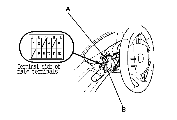 3. Disconnect the 12P connector (A) from the combination light switch (fog light switch) (B).