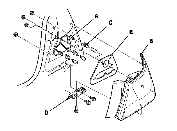 6. Remove the screw and separate the taillight and bracket (D).