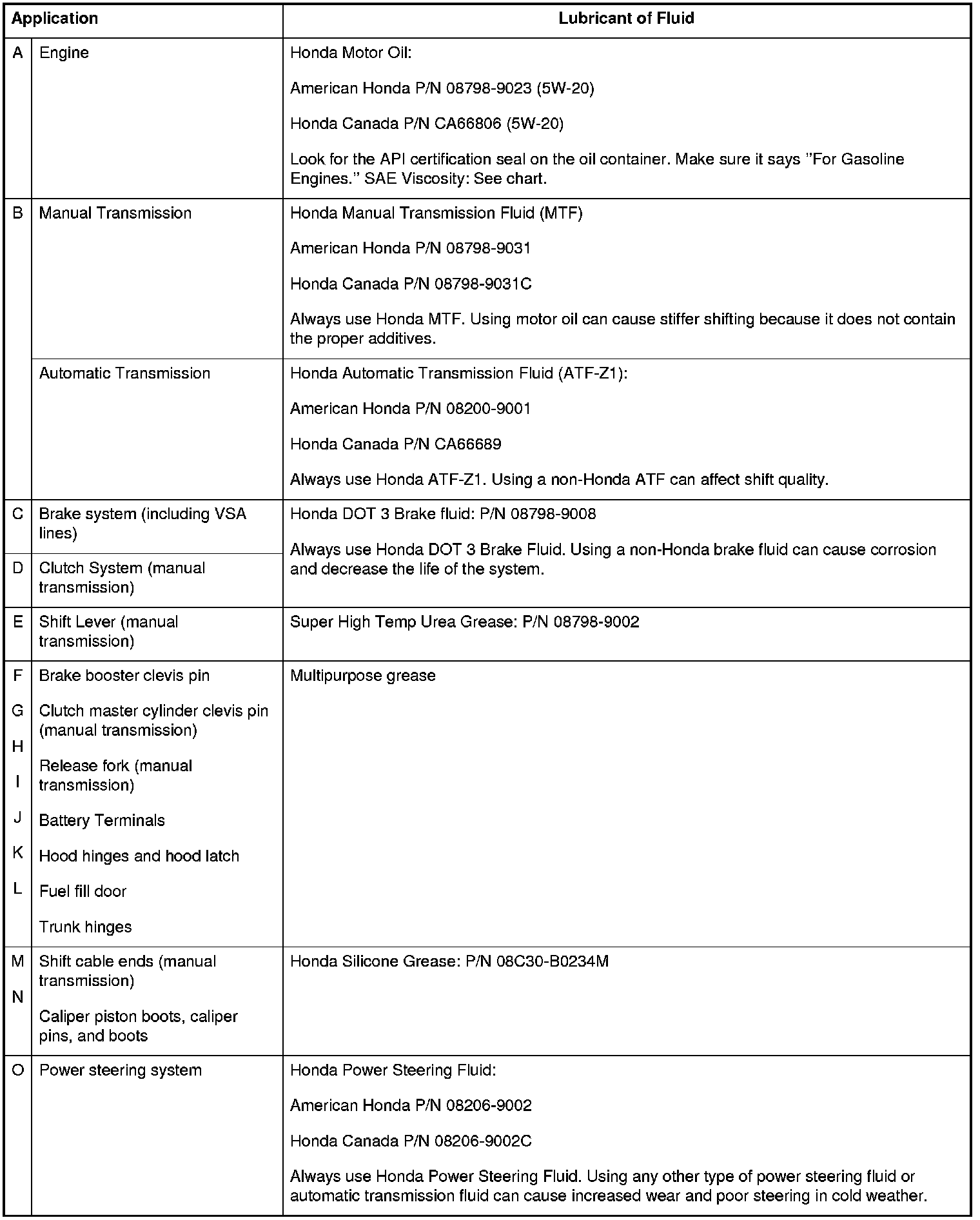 - Lubricate the following areas using the recommended lubricants and fluids.