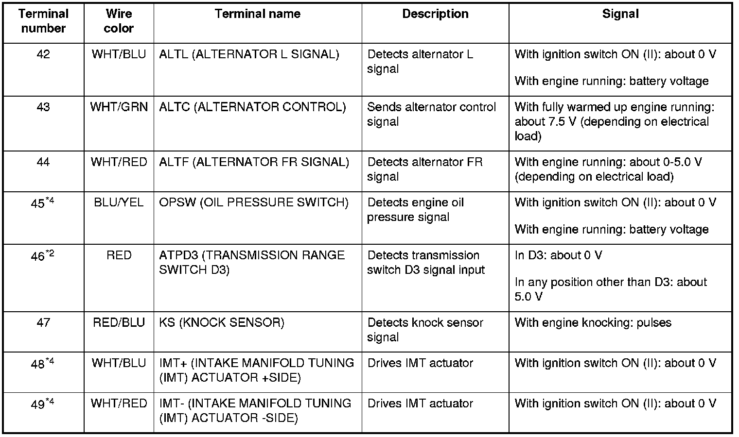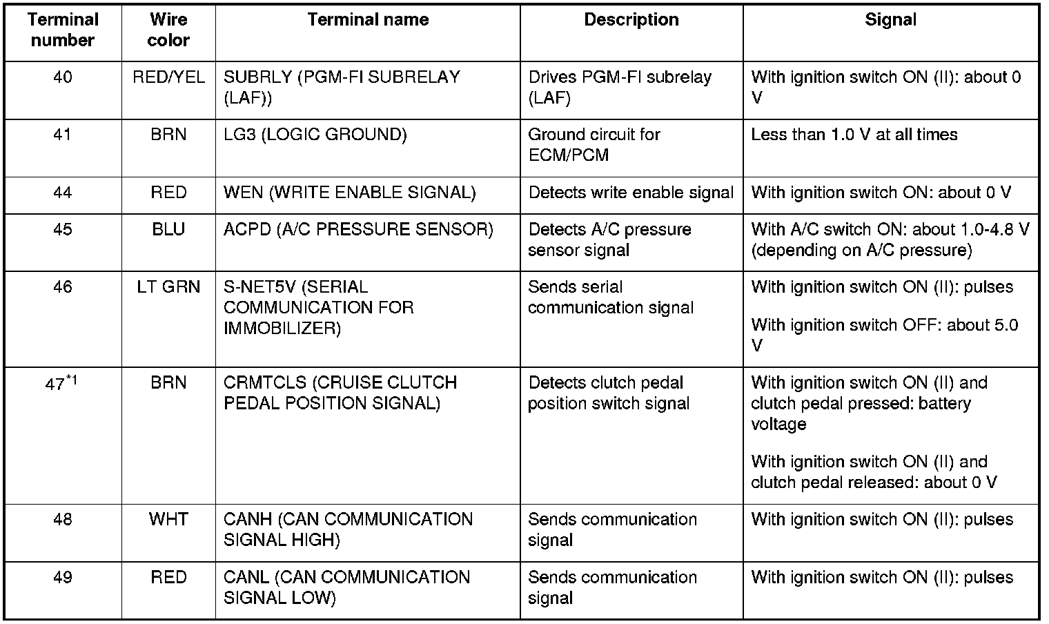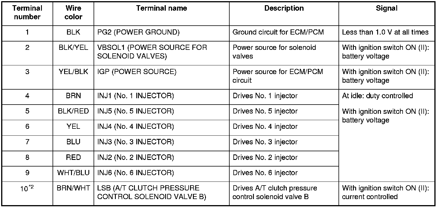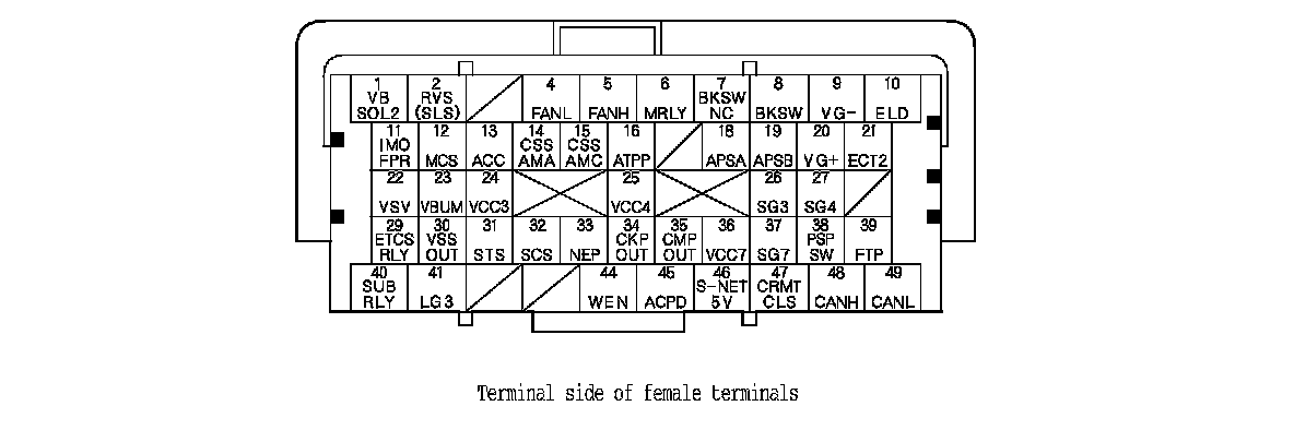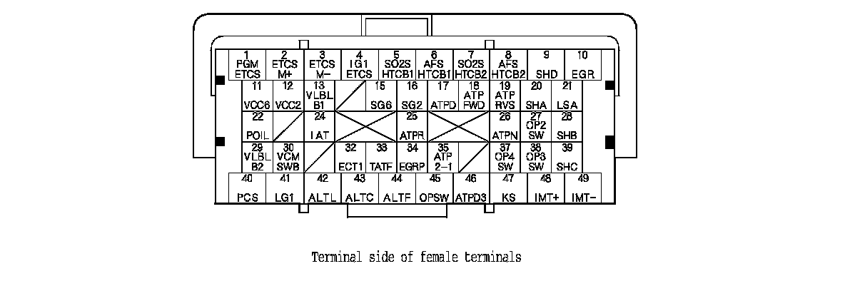 ECM/PCM Inputs and Outputs at Connector A (square) (49P)