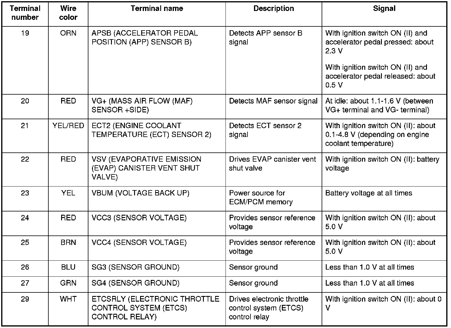 When an abnormality occurs in the signal from a sensor or from another control unit, the ECM/PCM ignores that signal and substitutes a pre-programmed value for them that allows the engine to continue running. This causes a DTC to be stored and the MIL to come on.