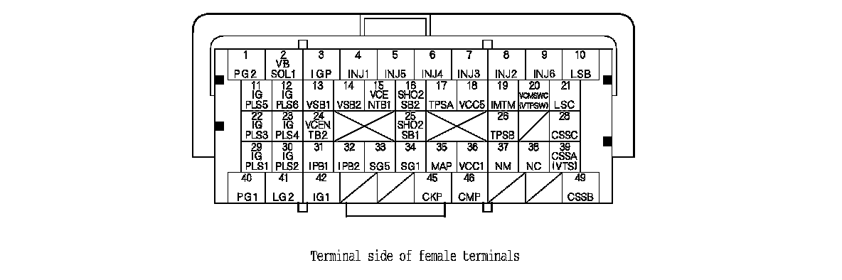 ECM/PCM Inputs and Outputs at Connector B (triangle) (49P)