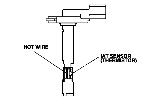 The mass air flow (MAF) sensor/intake air temperature (IAT) sensor contains a hot wire and a thermistor. It is located in the intake air passage. The resistance of the hot wire and thermistor change due to intake air temperature and air flow. The control circuit in the MAF sensor controls the current to keep the hot wire at a set temperature. The current is converted to voltage in the control circuit, then output to the ECM/PCM.