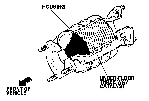 The WU-TWC/Under-floor TWC converts hydrocarbons (HC), carbon monoxide (CO), and oxides of nitrogen (NOx) in the exhaust gas to carbon dioxide (CO2), nitrogen (N2), and water vapor.