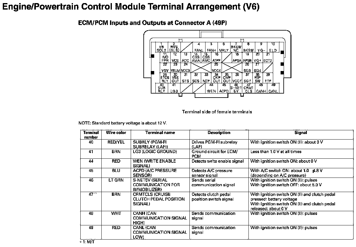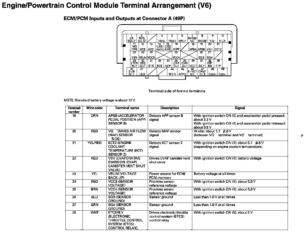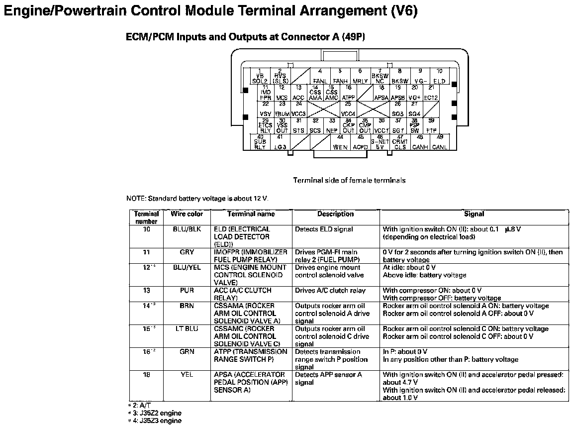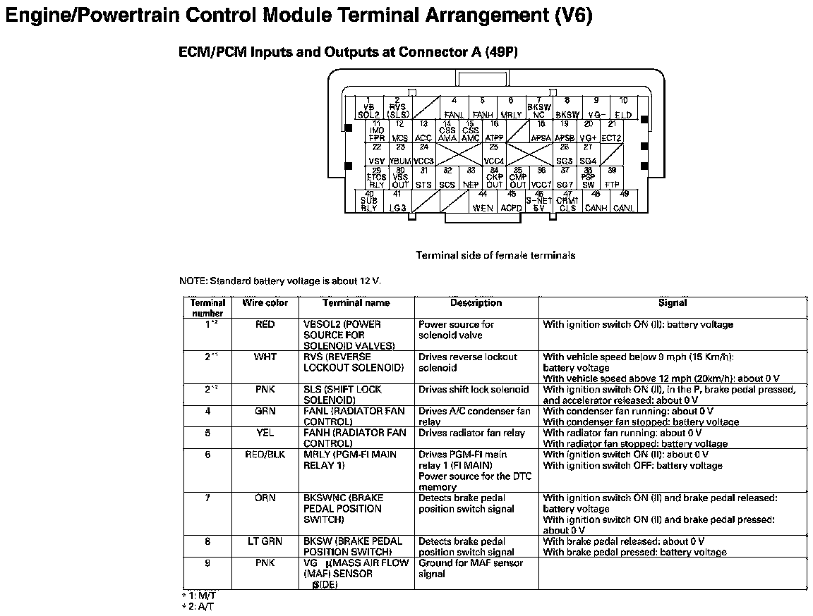 ECM/PCM Inputs And Outputs At Connector A