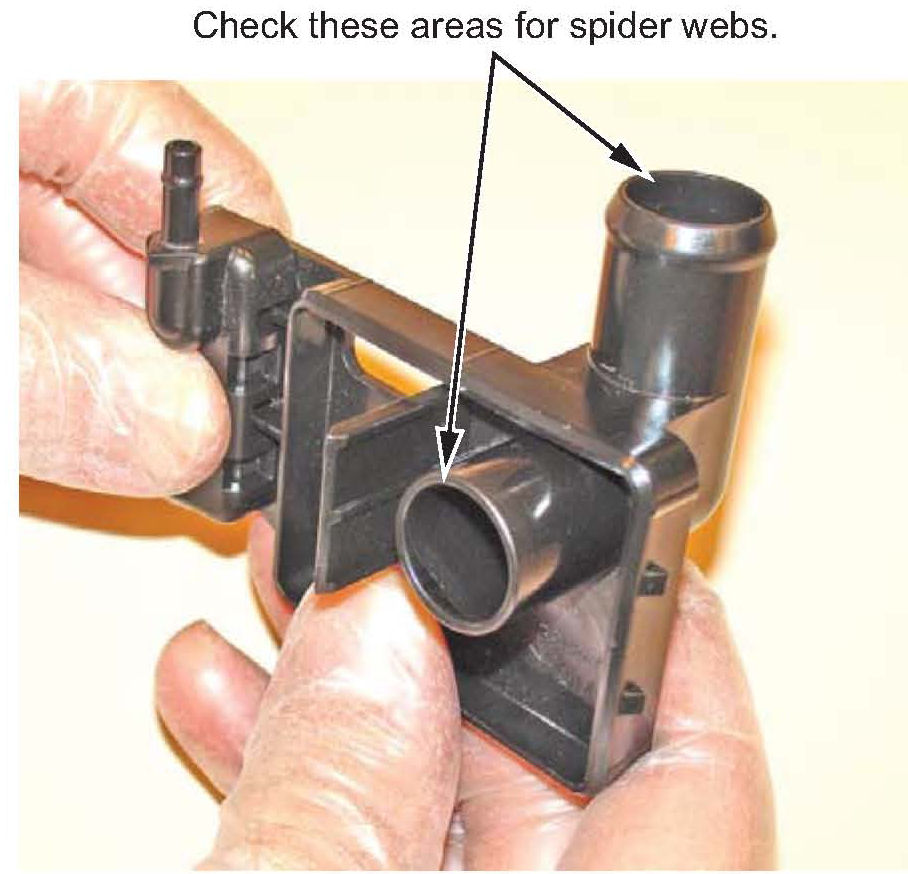 5. Clean the spider webs out of the drain box and the EVAP vent hose with compressed air or a small cleaning brush.