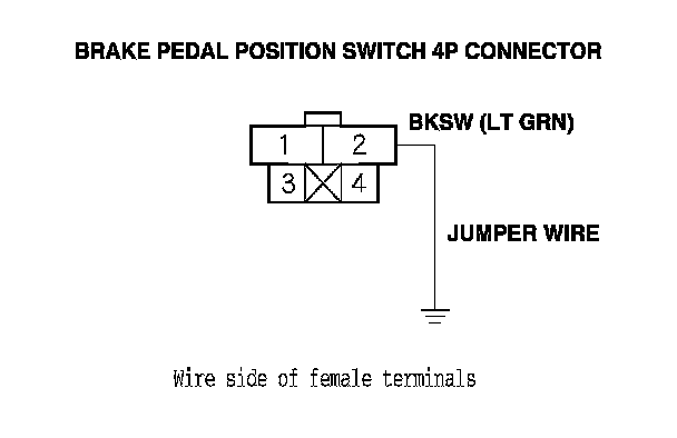9. Connect brake pedal position switch 4P connector terminal No. 2 to body ground with a jumper wire.