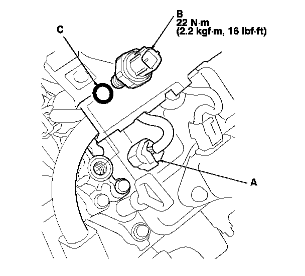 4. Install the parts in the reverse order of removal with a new O-ring (C).