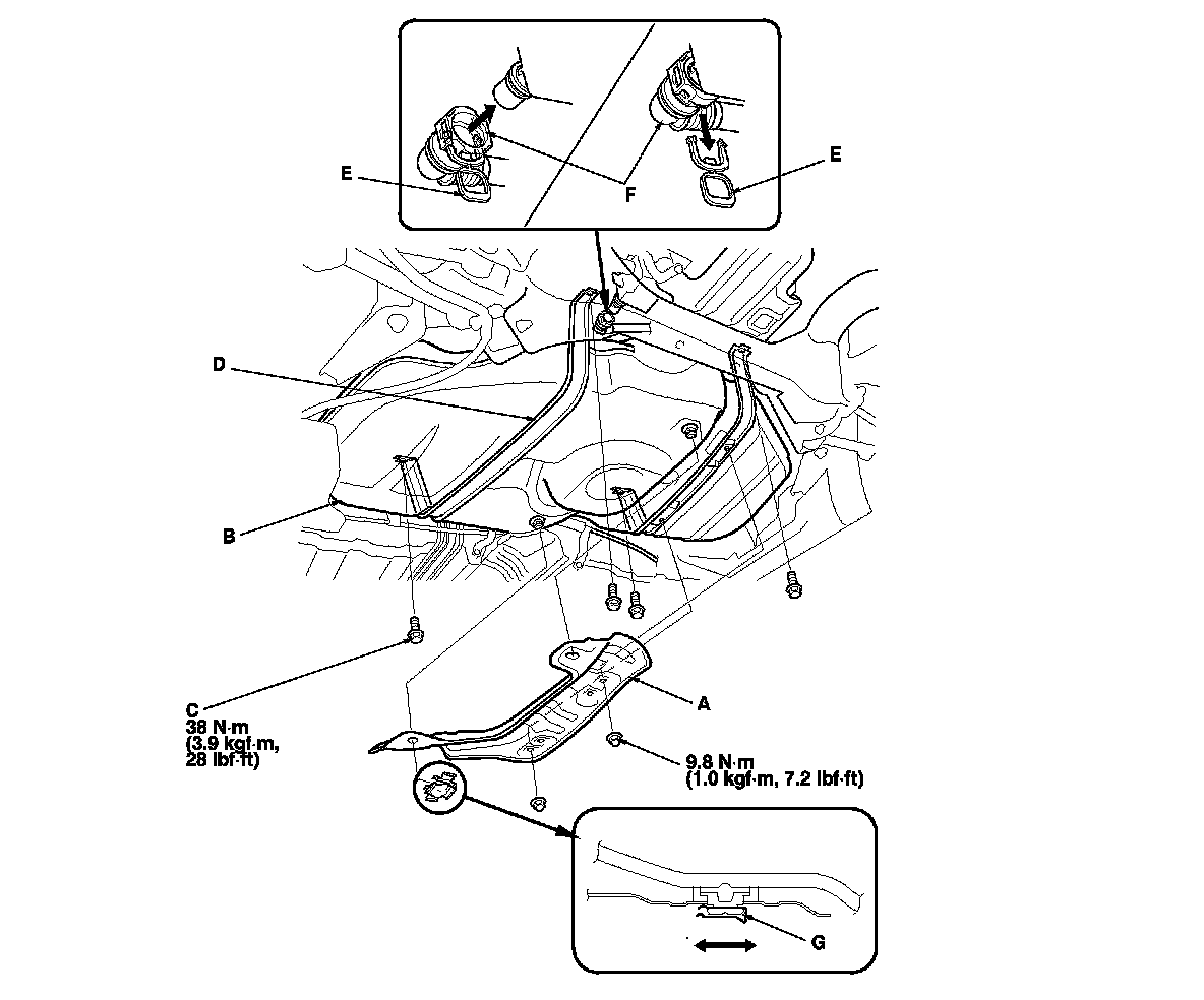 - When installing the fuel tank protector, make sure insert direction of the clip (G).