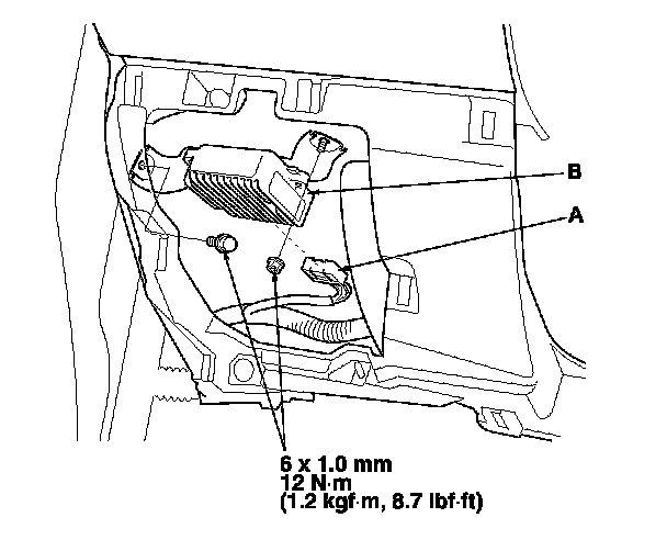 4. Remove the engine mount control unit (B).