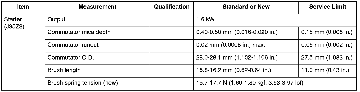 Starter (J35Z3) Specifications (J35Z3 Engine)