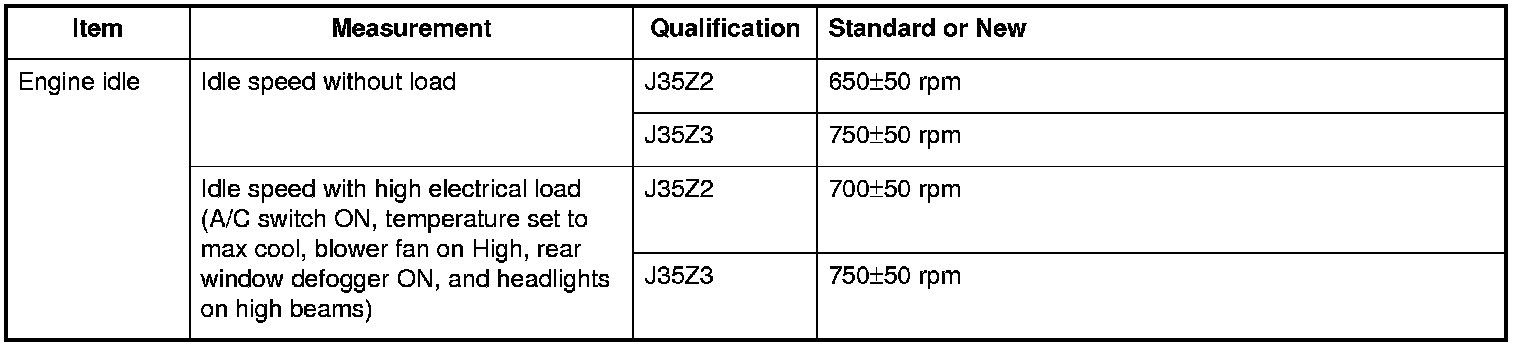 Engine idle Specifications