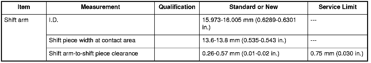 Shift Arm Specifications (M/T)
