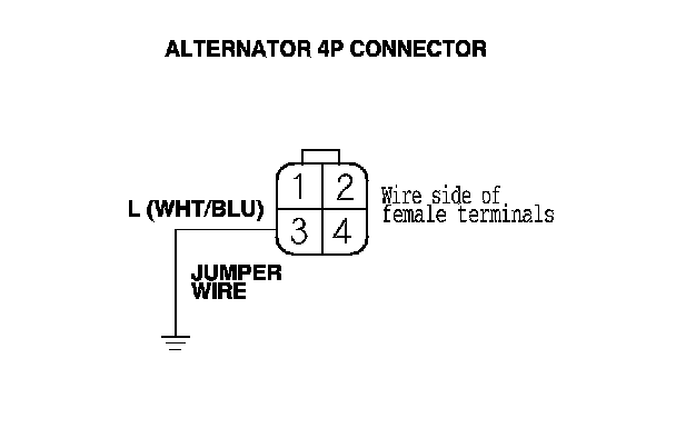 17. Connect alternator 4P connector terminal No. 3 and body ground with a jumper wire.