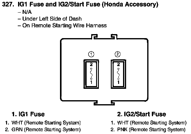 IG1 Fuse and IG2/Start Fuse Connector View (Honda Accessory: A/T)