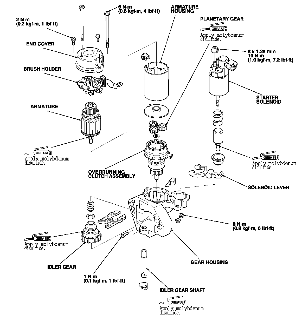 5. Disassemble the starter as shown at the beginning of this procedure.