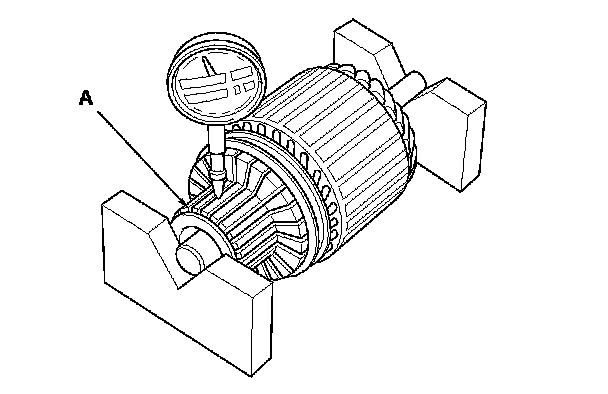 8. Check the commutator diameter. If the diameter is below the service limit, replace the armature.