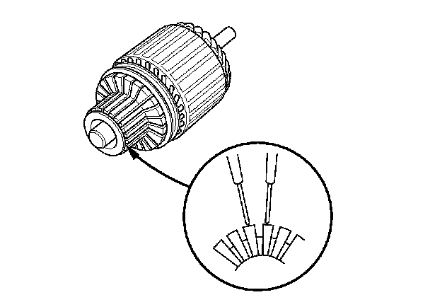 11. Use an ohmmeter to check for continuity between the segments of the commutator. If there is an open circuit between any segments, replace the armature.