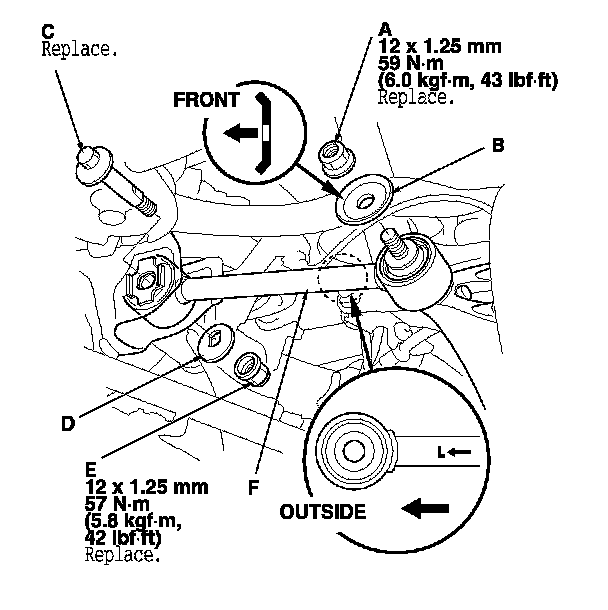 - First install all of the components, and lightly tighten the bolts and the nuts, then raise the suspension to load it with the vehicle's weight before fully tightening to the specified torque values.