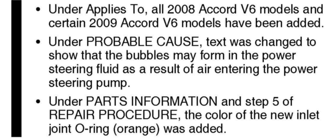 (Supersedes 07-086, Power Steering Moans or Whines, dated December 1, 2007, to revise the information marked by the black bars)