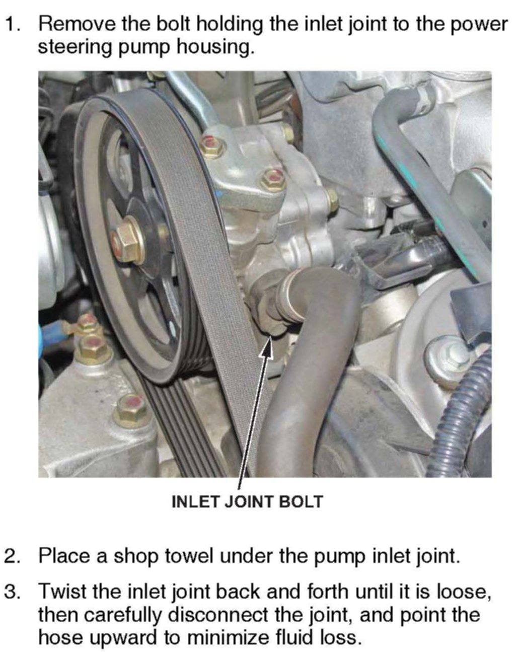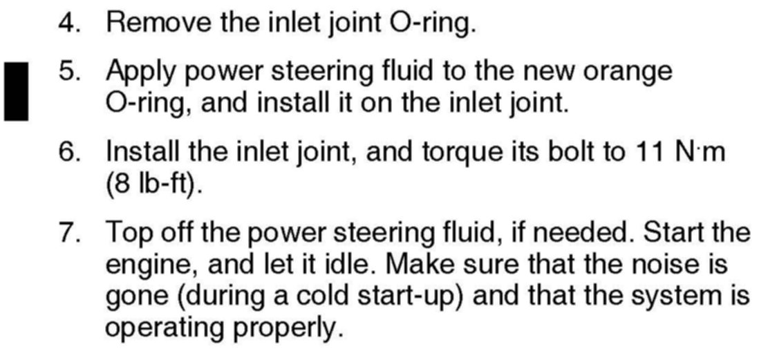 Replace the O-ring on the power steering pump inlet joint.