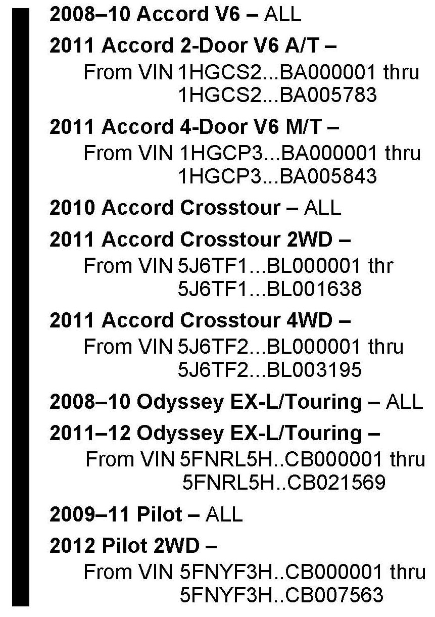 '11-12 Odyssey, '09-10 Pilot 4WD, '11-12 Pilot):