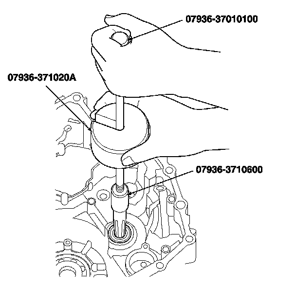 2. Install a new bearing until it bottoms in the transmission housing using the driver and the 37 x 40 mm attachment.