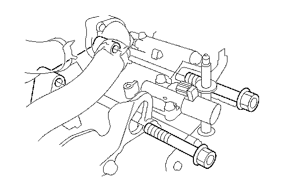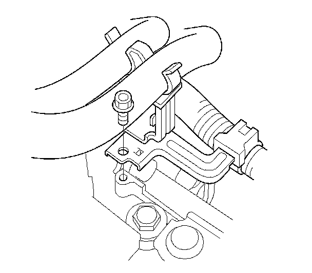 31. Remove the harness clamp bracket from the rear cylinder head; use the bracket bolt hole to attach the engine hanger balance bar rear arm.