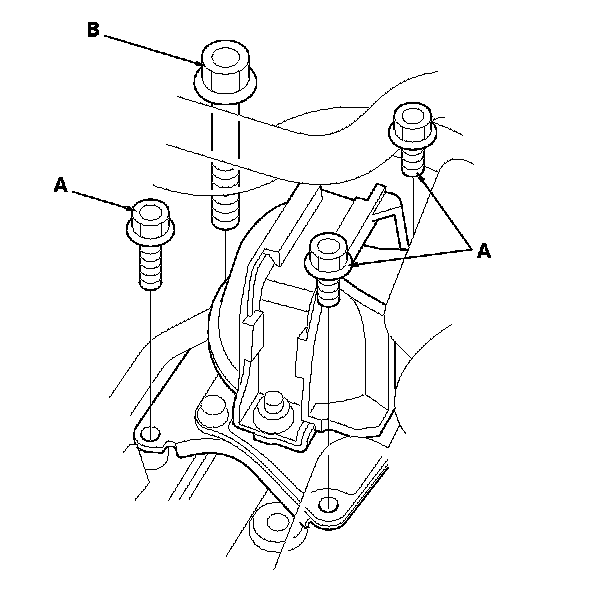 NOTE: Do not remove the TORX bolt (A) from the upper transmission mount. If the TORX bolt is removed, the upper transmission mount must be replaced as an assembly.