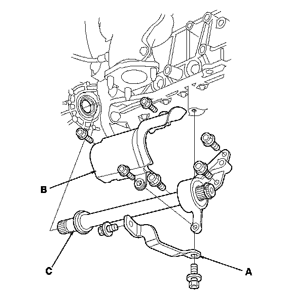57. Remove the bolt securing the sensor harness clamp bracket (C).