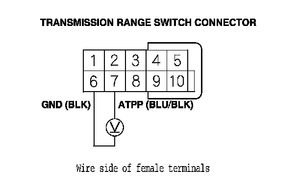 24. Measure the voltage between transmission range switch connector terminals No. 7 and No. 6.