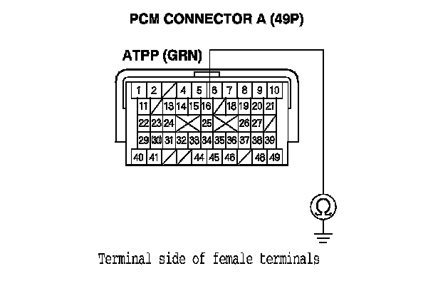 29. Check for continuity between PCM connector terminal A16 and transmission range switch connector terminal No. 7.