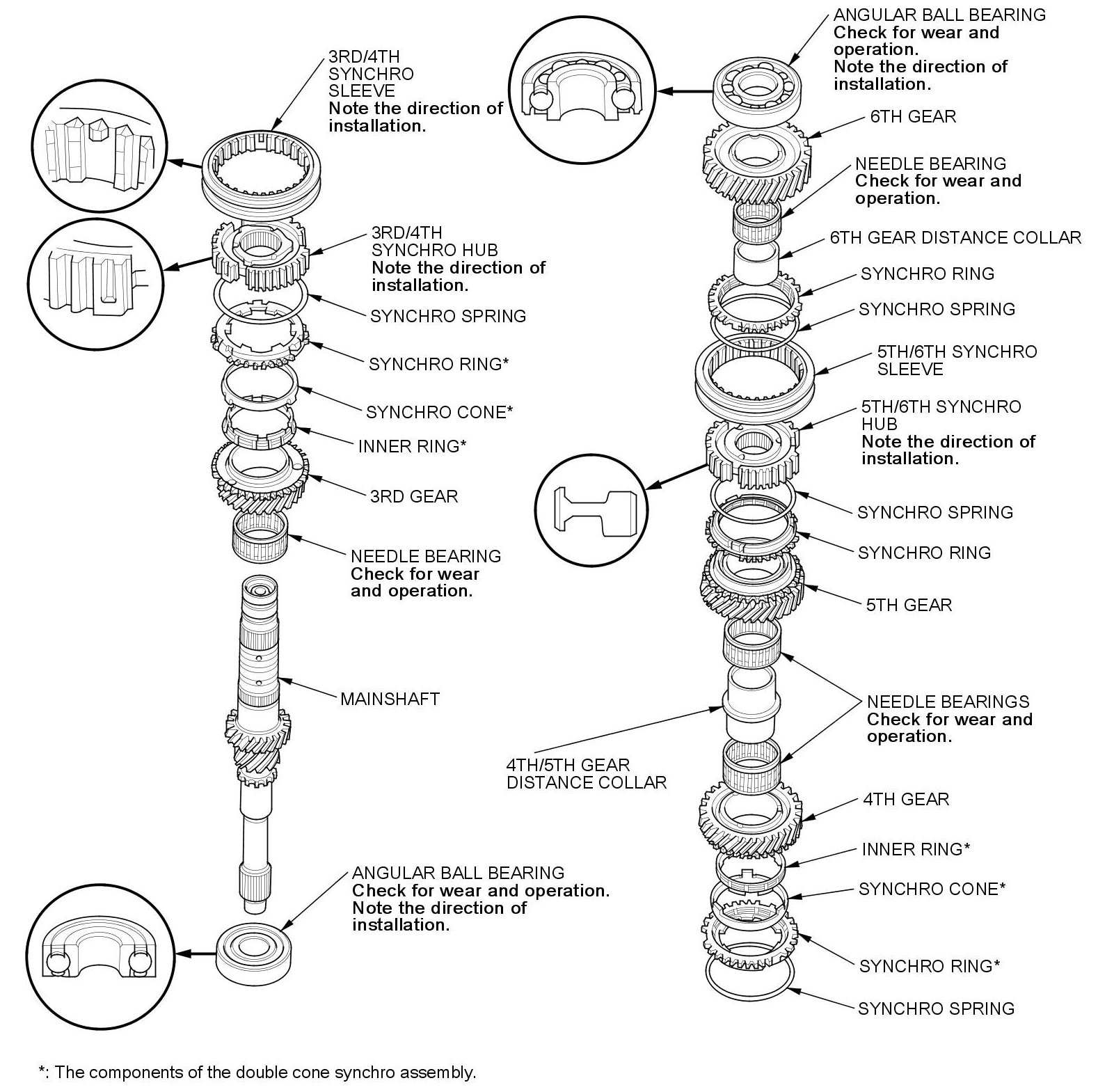 NOTE: Make sure to install the 3rd/4th synchro hub in the direction shown.