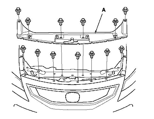 3. Remove the front grille cover (A). Front Grille Cover Replacement (2-Door)