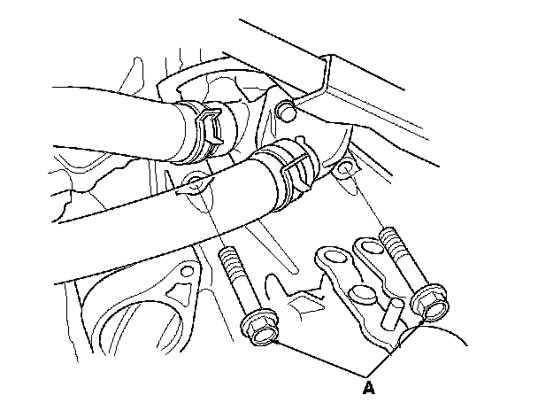 25. Remove the upper transmission mount bracket bolts (A).