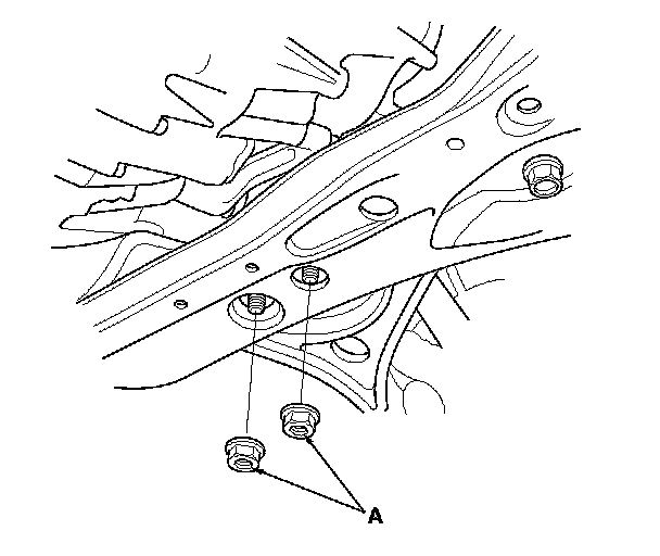36. Remove the lower transmission mount mounting nuts (A).