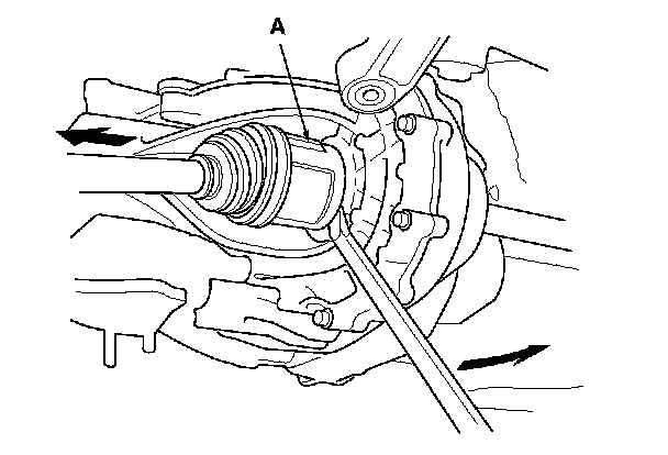 43. Pry the left driveshaft inboard joint (A) from the differential using a prybar.