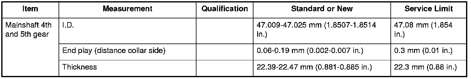 Mainshaft 4th and 5th Gear Specifications (M/T)