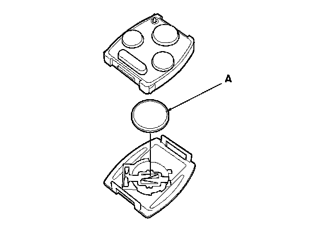 4. Replace the transmitter battery (A) with a new one, and try to lock and unlock the doors with the transmitter by pressing the lock or unlock button five or six times.