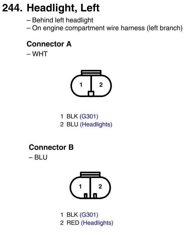 View 244 - Headlight, Left Connector View