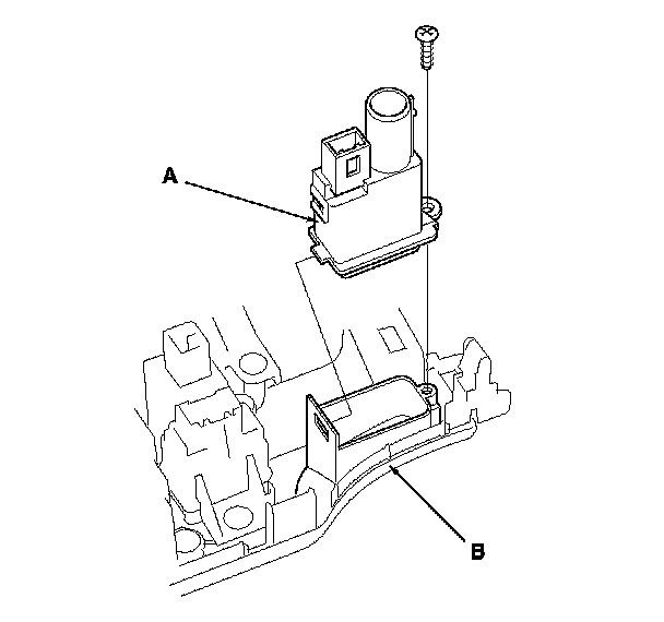 2. Remove the self-tapping screw and the humidity/in-car temperature sensor (A) from the center panel (B).