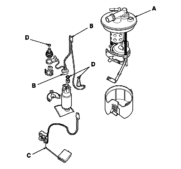 4. Install the parts in the reverse order of removal with new O-rings (D). When installing the fuel tank unit, align the marks on the unit and the fuel tank. Fuel Tank Unit Removal and Installation
