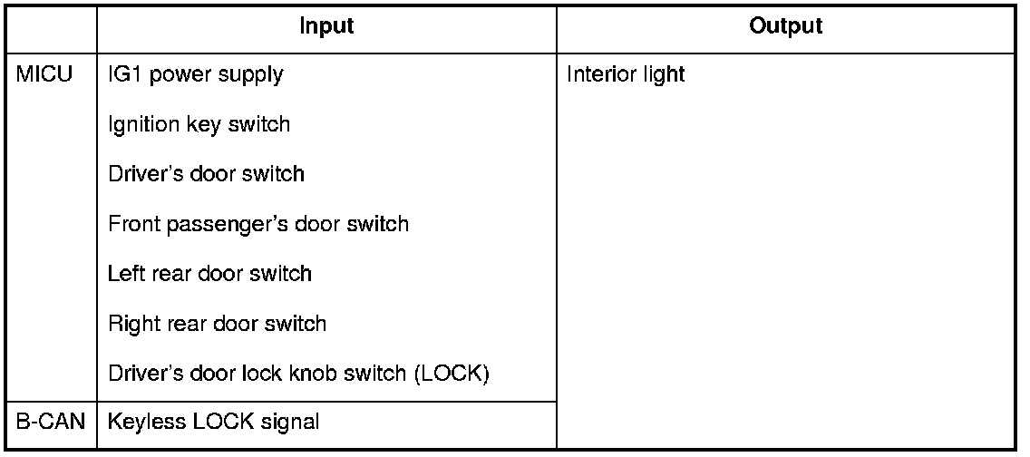 The MICU controls the lighting system and horn based upon B-CAN signals and input signals from each switch.