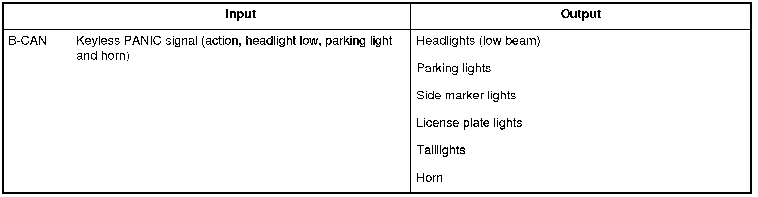 The MICU controls the keyless PANIC based upon B-CAN signals.