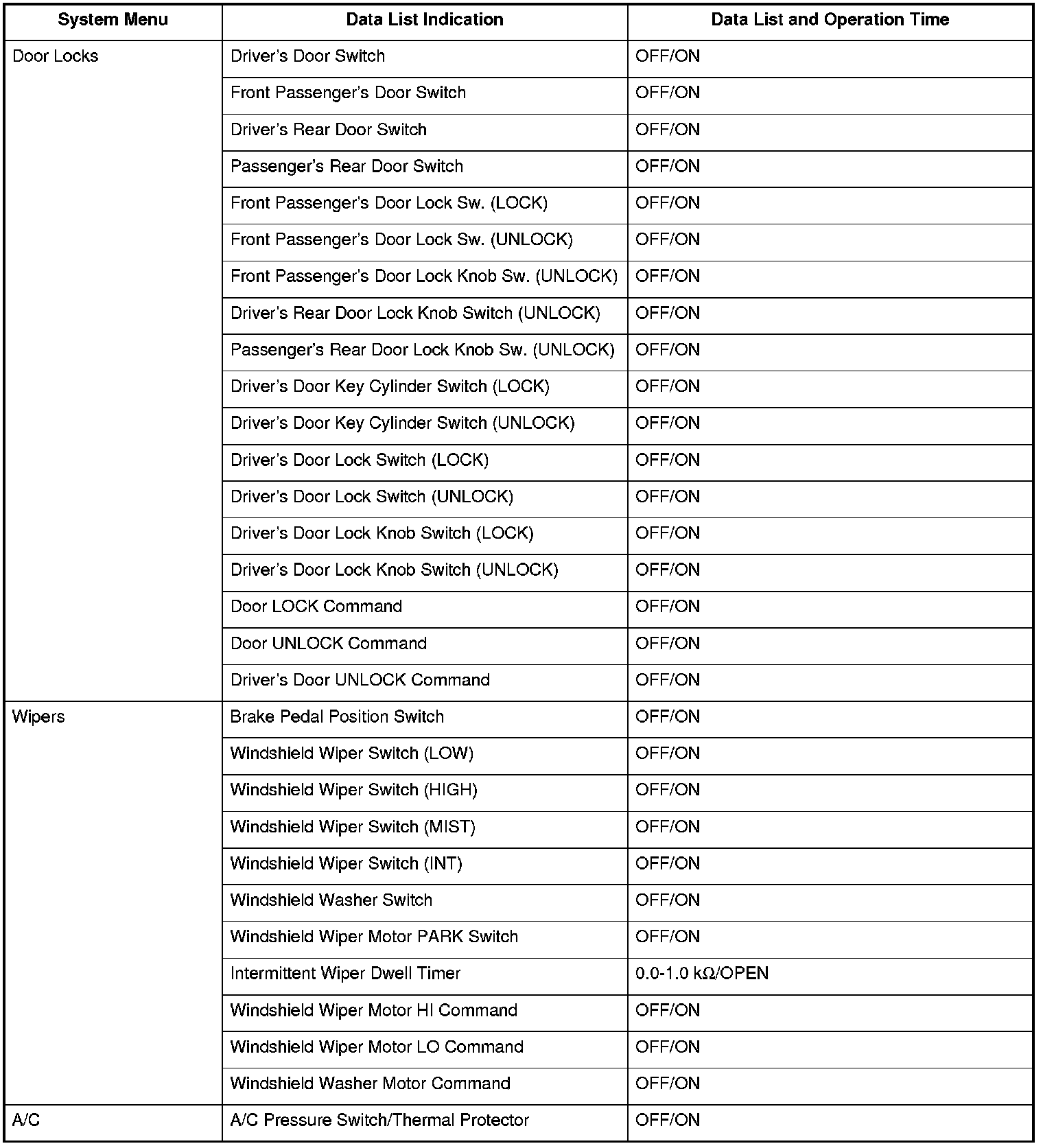 Power Door Locks (Normally LOCK/UNLOCK Operation)