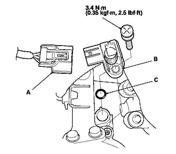 Install the parts in the reverse order of removal with a new O-ring (C).