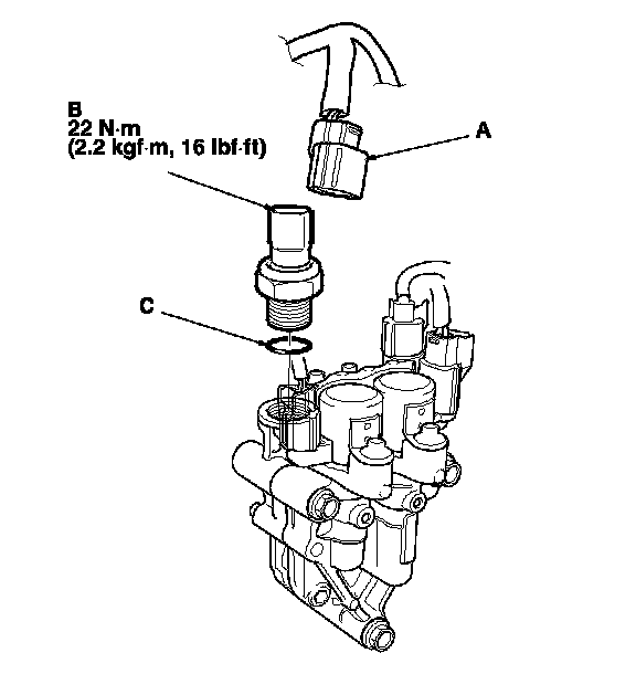 3. Install the parts in the reverse order of removal with a new O-ring (C).