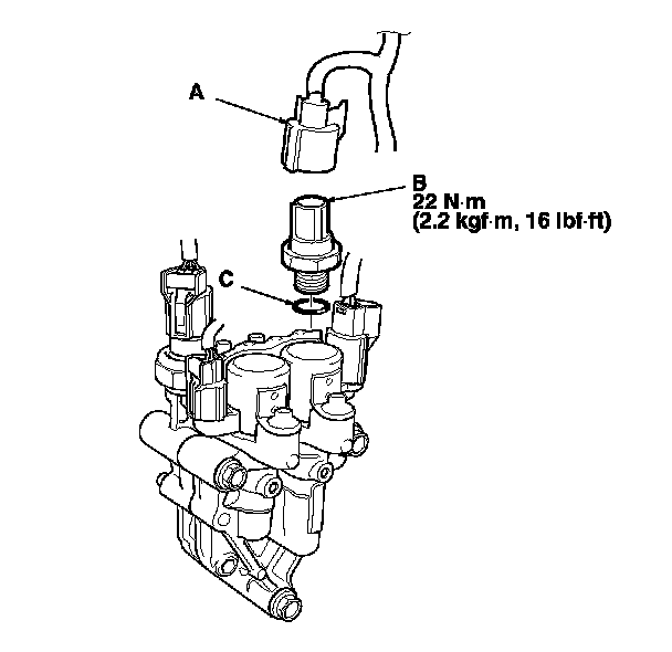 3. Install the parts in the reverse order of removal with a new O-ring (C).