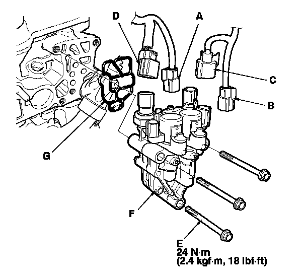 5. Install the parts in the reverse order of removal with a new rocker arm oil control valve filter (G).